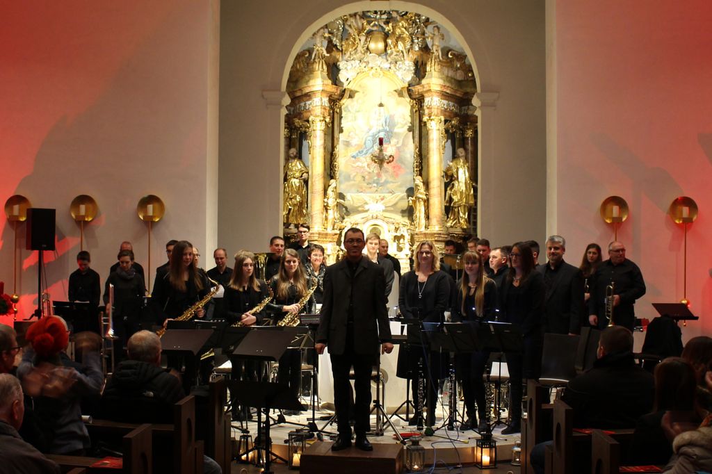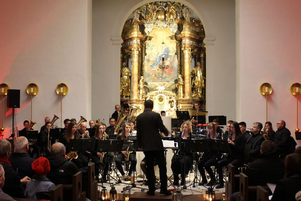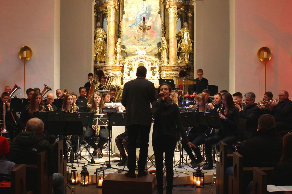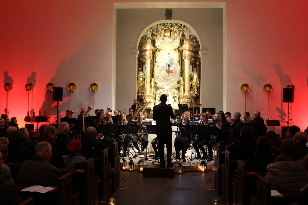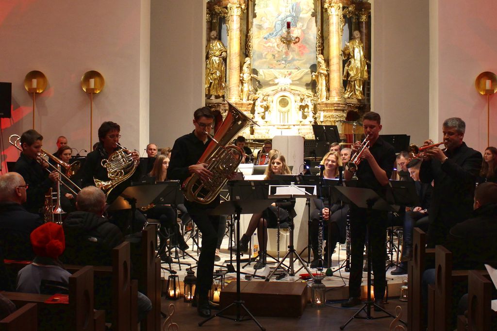 Unter der Leitung von Martin Dummer wurde den Zuhörern in der voll besetzten Kirche ein stimmungsvolles Konzert mit solistischen Einlagen präsentiert. Die Beleuchtung mit Kerzenlicht, das in Laternen von den Musikern zu Beginn des Konzerts in die Kirche gebracht wurde, sorgte zusätzlich für eine vorweihnachtliche Stimmung.