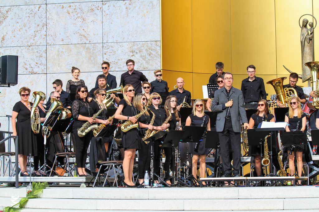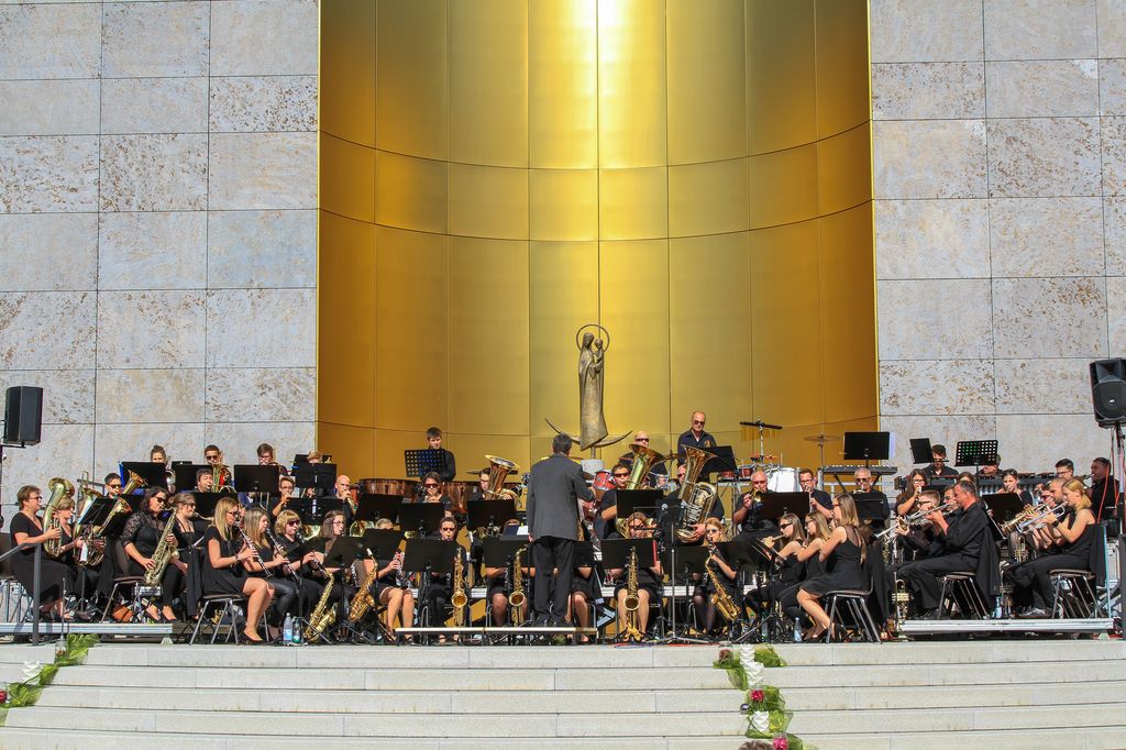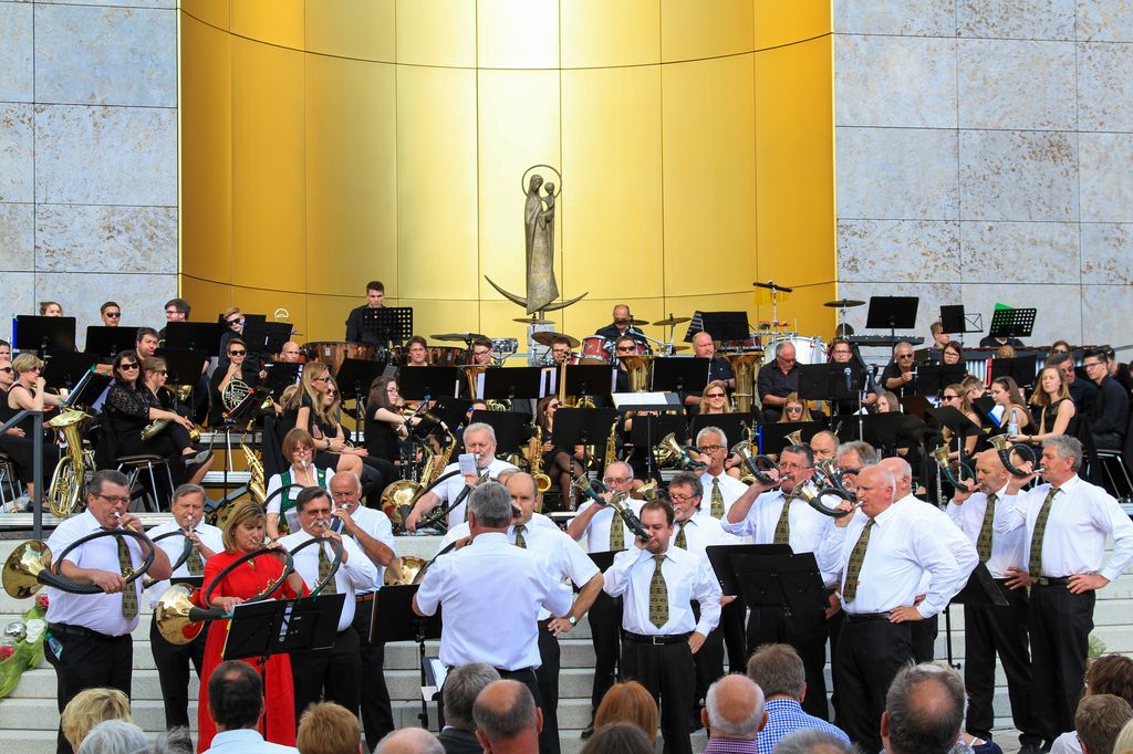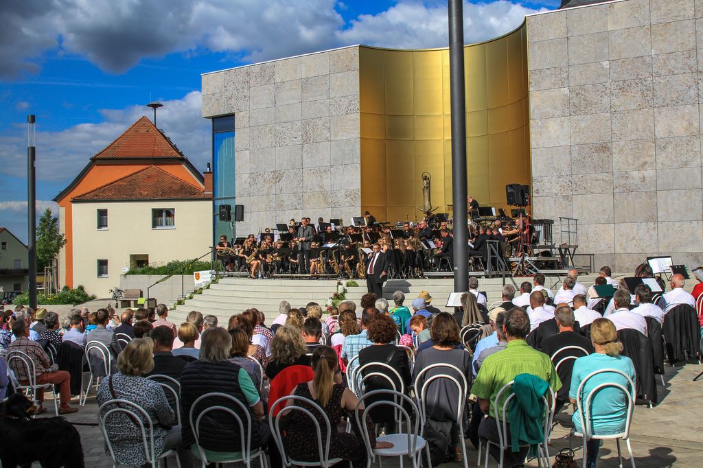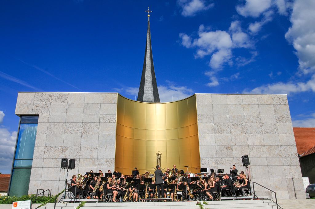Auch in diesem Jahr veranstalteten die beiden Musikvereine aus Waigolshausen und Theilheim ein gemeinsames Konzert vor der imposanten Kulisse der Waigolshäuser Kirche.