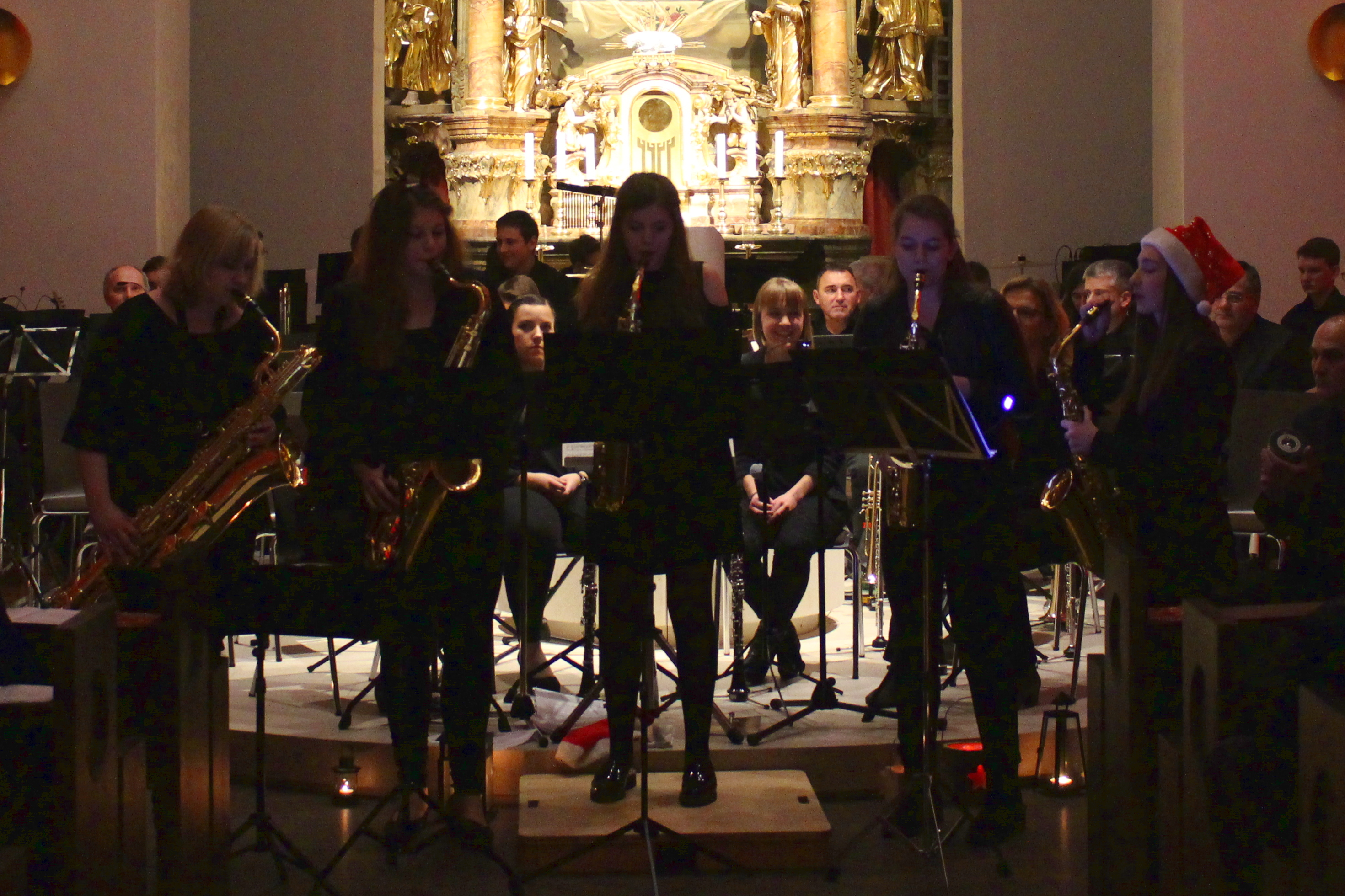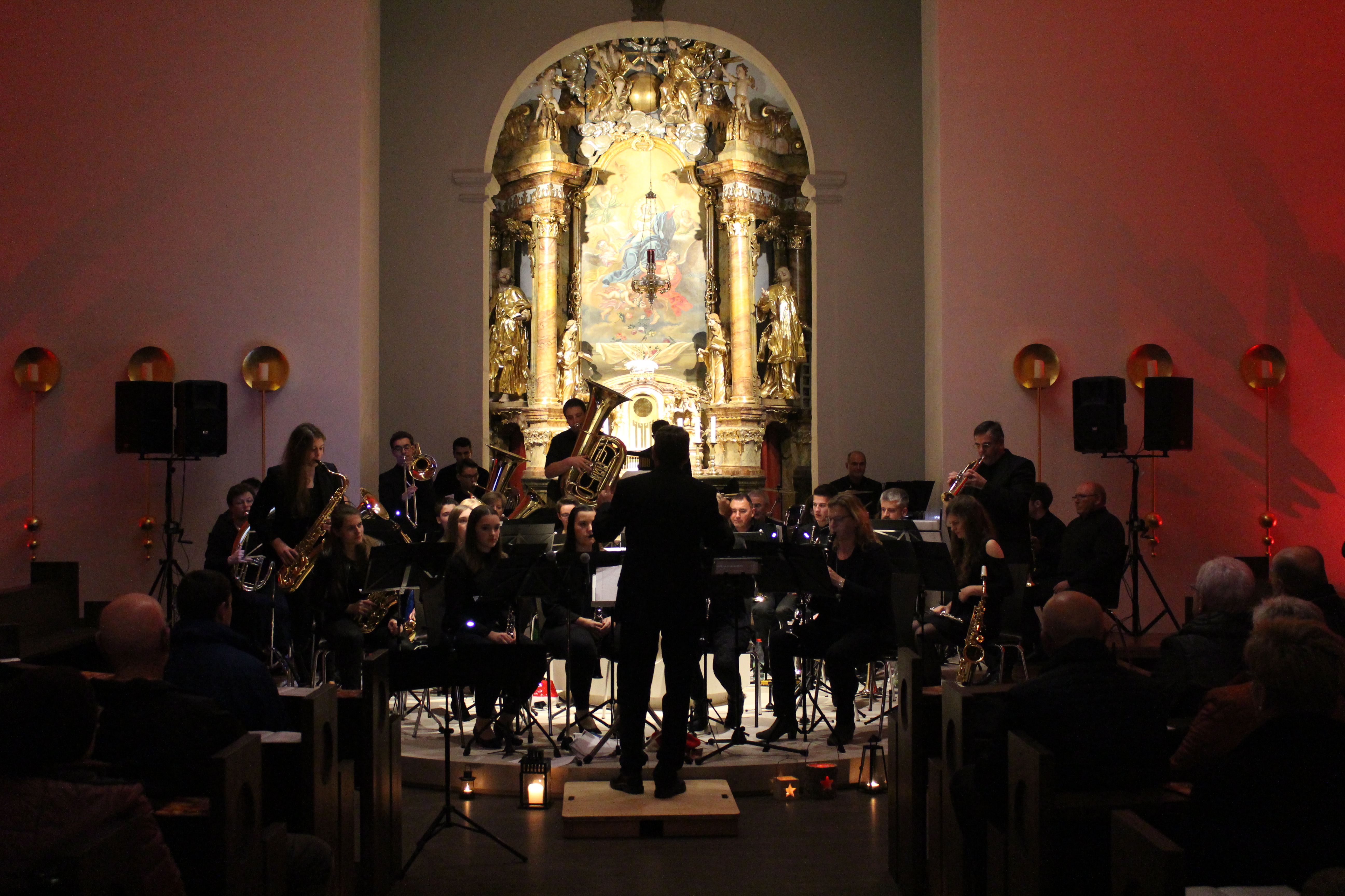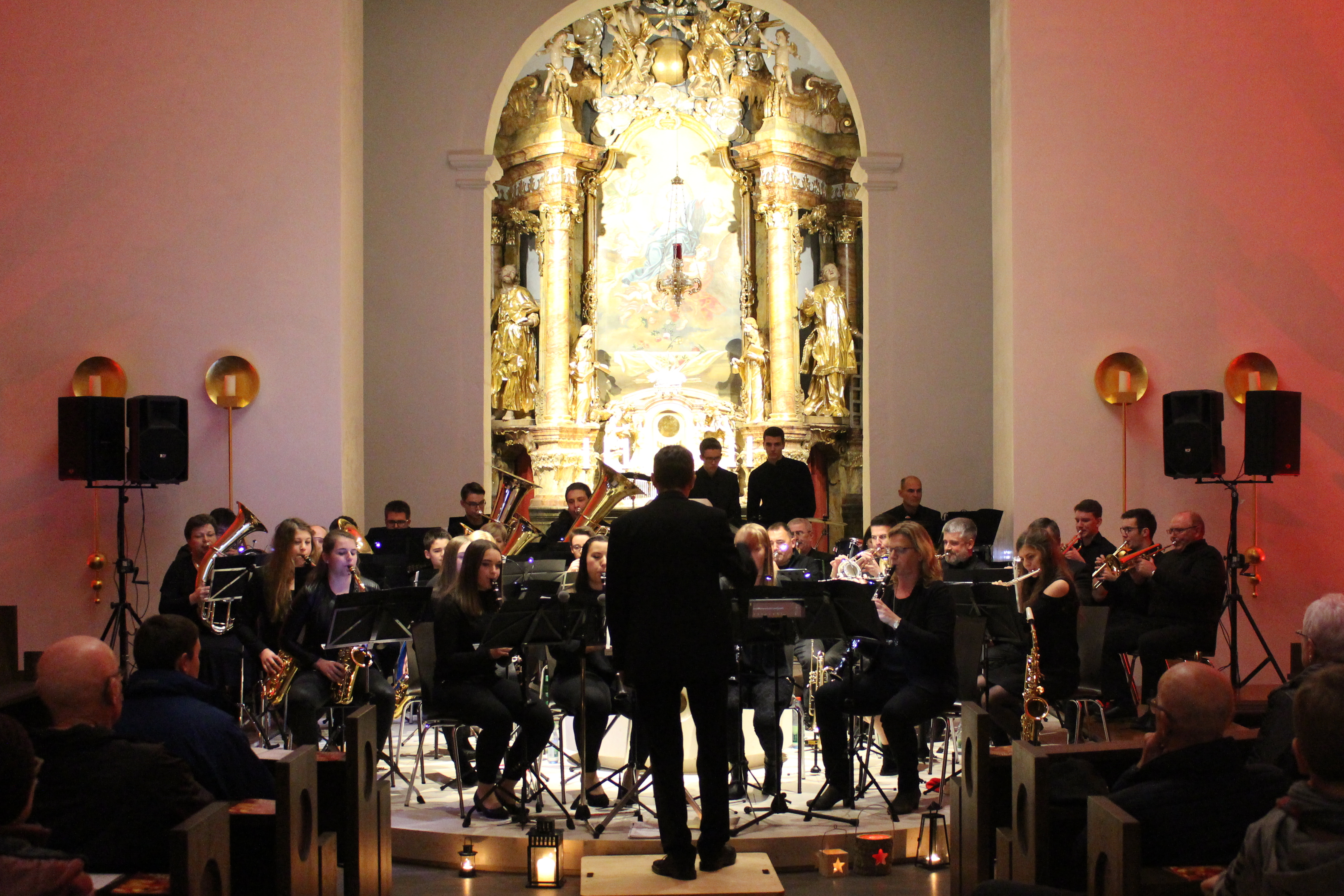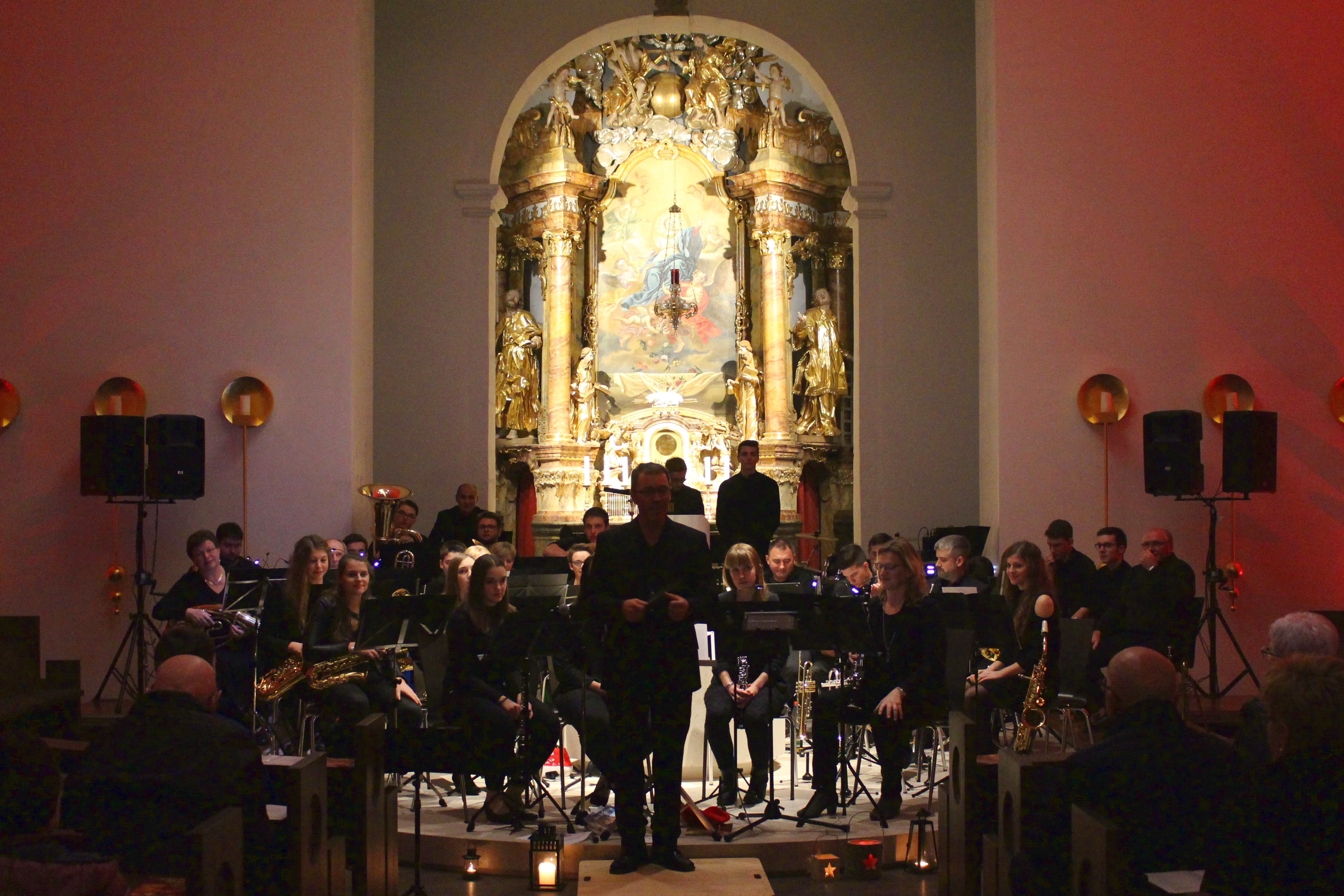 Unter der Leitung von Martin Dummer wurde den Zuhörern in der voll besetzten Kirche ein stimmungsvolles Konzert mit solistischen Einlagen präsentiert. Die Beleuchtung mit Kerzenlicht, das in Laternen von den Musikern zu Beginn des Konzerts in die Kirche gebracht wurde, sorgte zusätzlich für eine vorweihnachtliche Stimmung.
