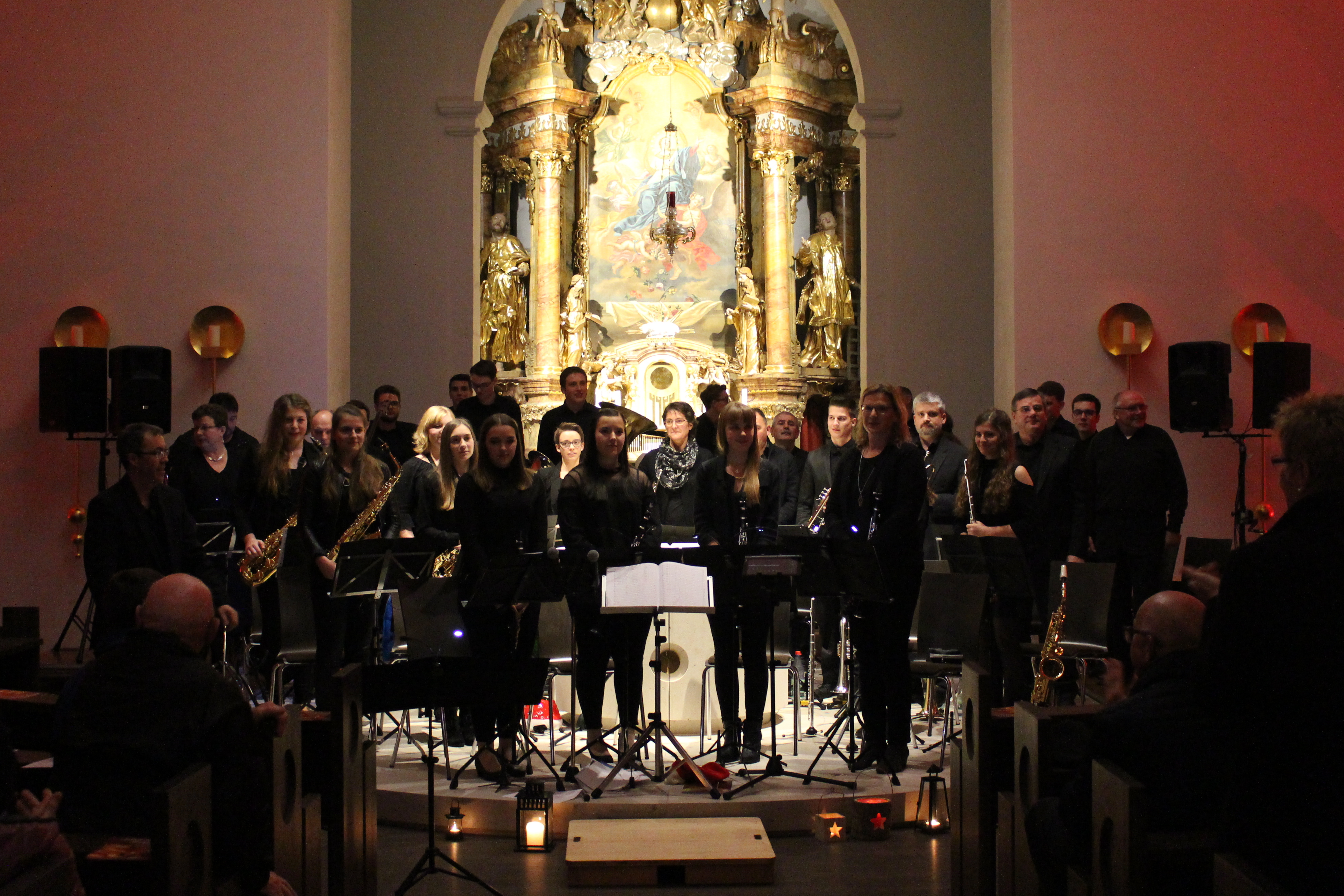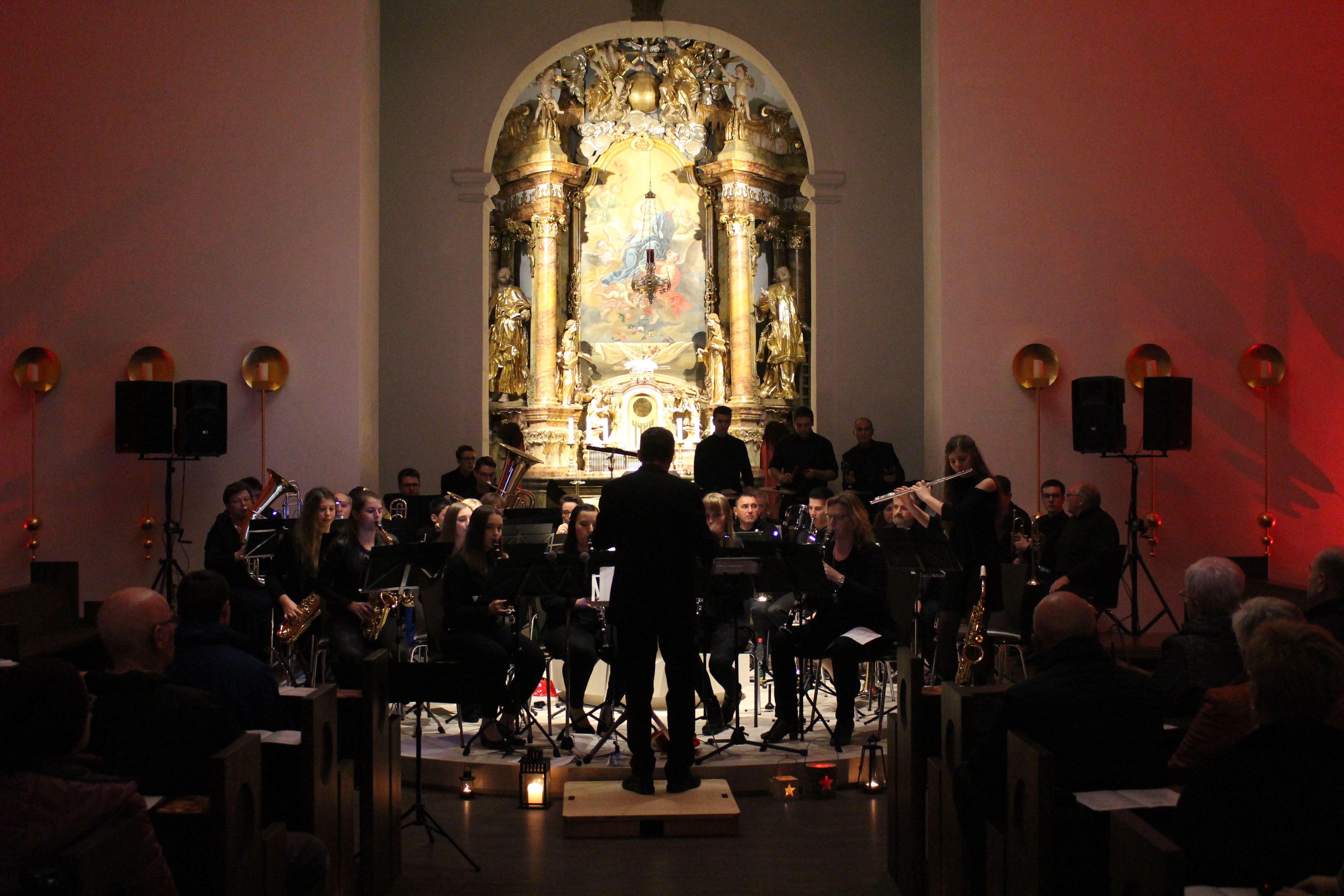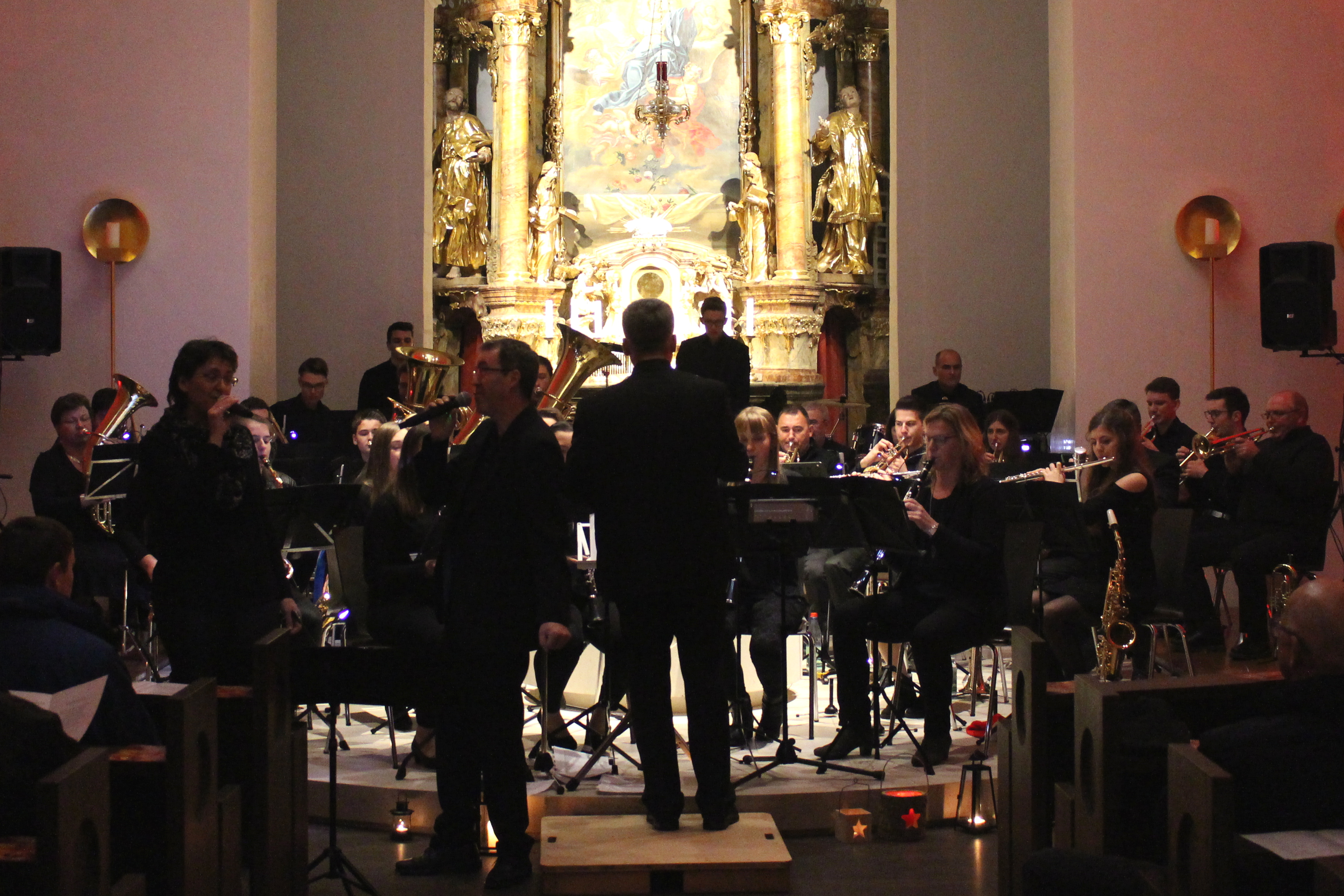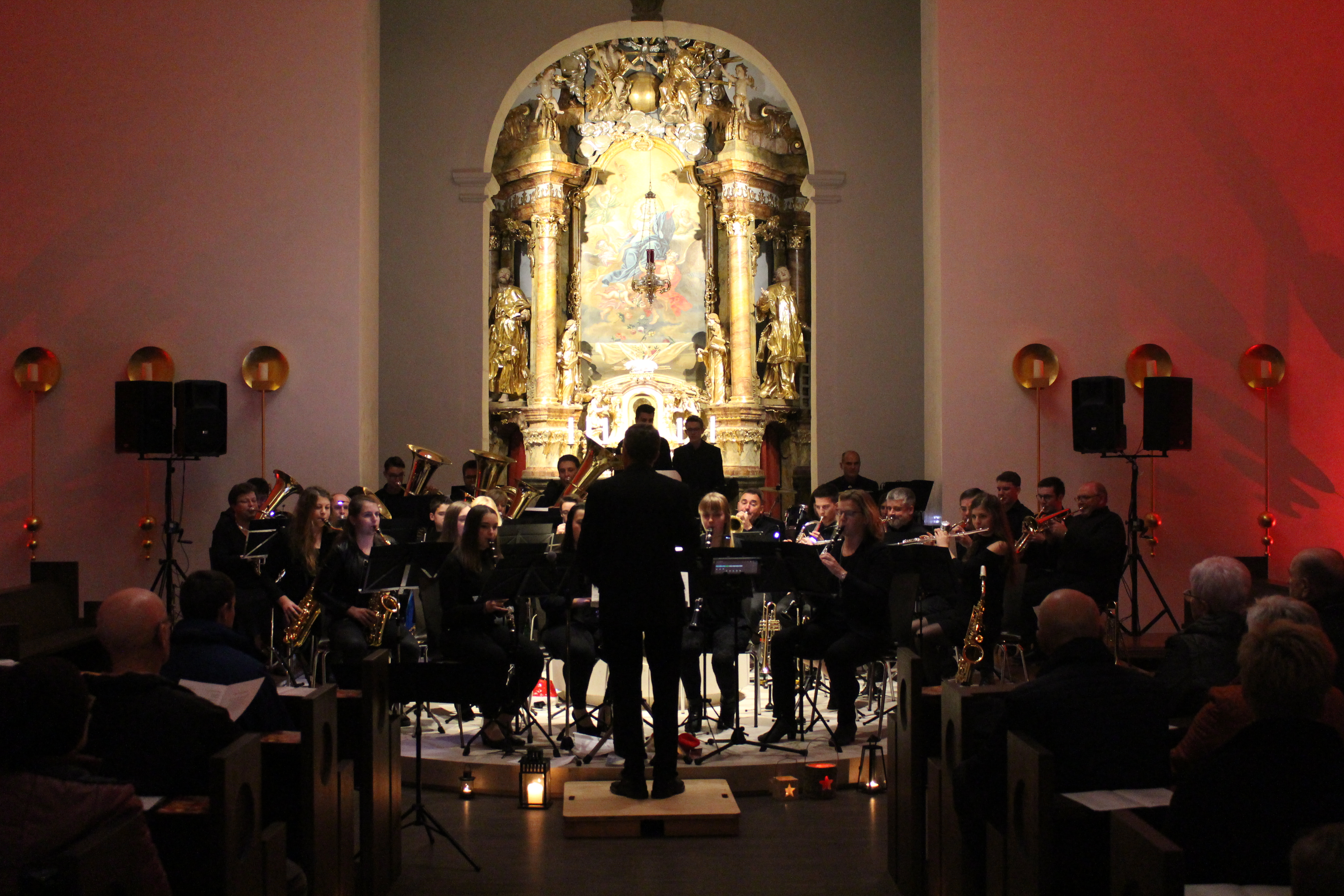 Unter der Leitung von Martin Dummer wurde den Zuhörern in der voll besetzten Kirche ein stimmungsvolles Konzert mit solistischen Einlagen präsentiert. Die Beleuchtung mit Kerzenlicht, das in Laternen von den Musikern zu Beginn des Konzerts in die Kirche gebracht wurde, sorgte zusätzlich für eine vorweihnachtliche Stimmung.
