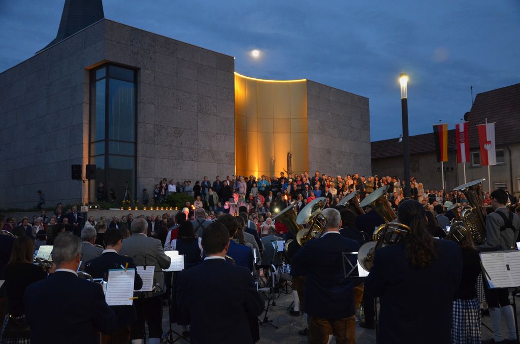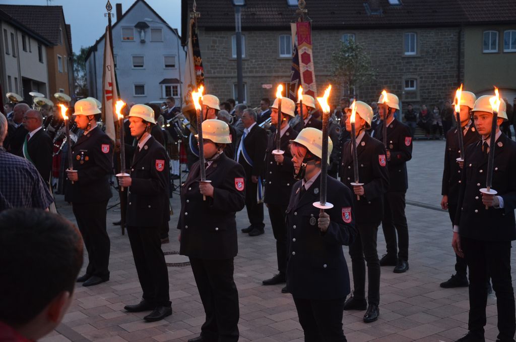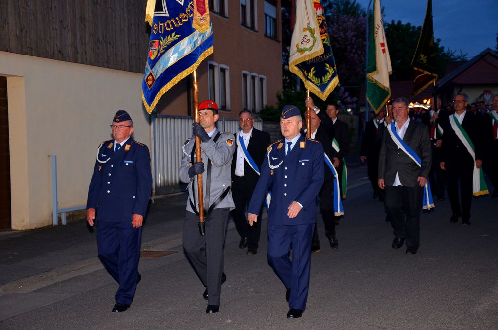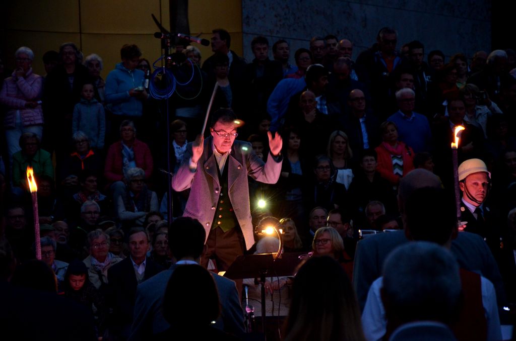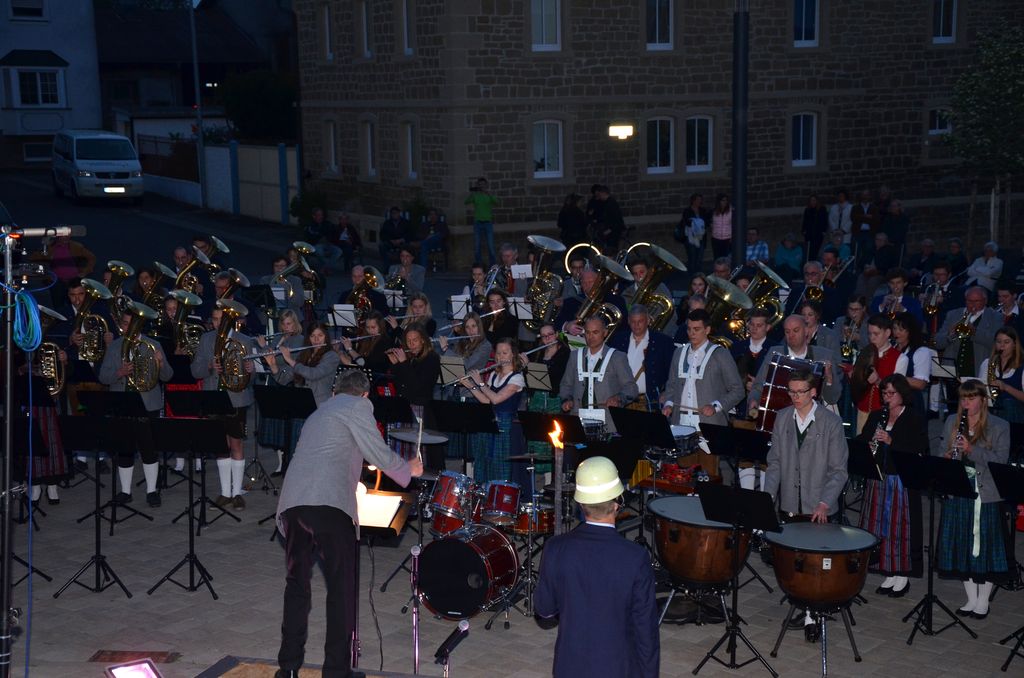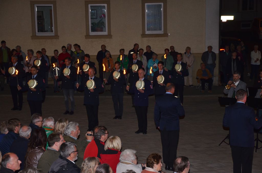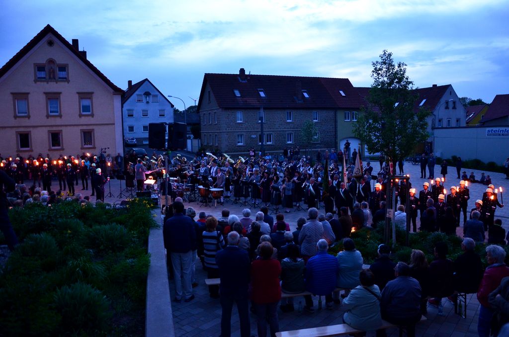 Unterstützt wurde der Musikverein Waigolshausen bei der Aufführung von den beiden anderen Musikkapellen der Gemeinde, Hergolshausen und Theilheim. So waren es am Ende fast 90 Musikanten, die bei Dämmerlicht das Publikum begeisterten. Einen würdigen Rahmen boten der Veranstaltung auch die Fackelträger der Freiwilligen Feuerwehr Waigolshausen sowie die Fahnenabordnungen der örtlichen Vereine. Während der Serenade, die dem eigentlichen Zapfenstreich vorausgeht, wurden den zahlreich erschienenen Zuhörern Stücke wie "Der große Kurfürsten Reitermarsch", "Music" von John Miles und der vom Gründungsdirigenten Siegbert Schlotter komponierte Marsch "Mit Freude und Schwung" dargeboten. Die musikalische Leitung hatte Martin Dummer, angeführt wurde die Formation vom 1. Kommandanten der Waigolshäuser Feuerwehr, Thomas Strobel.
