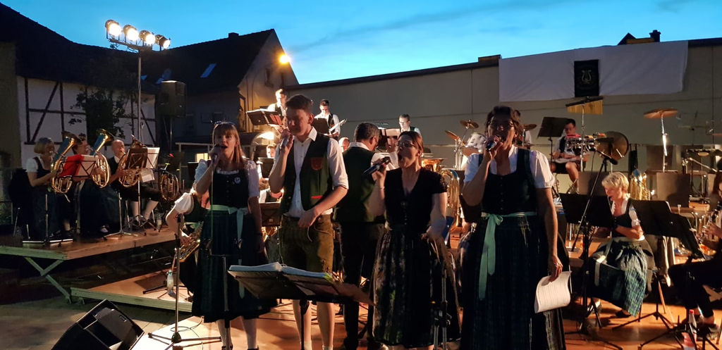 Auf dem Dorfplatz veranstaltete der Musikverein Waigolshausen in diesem Jahr wieder sein Konzert - diesmal allerdings mit einem etwas anderen Verlauf des Abends...