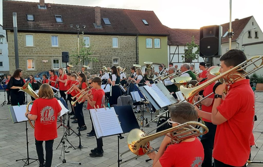 „We will… Rock, Pop and Blasmusik you!“ Mit einem fulminanten Open Air eröffneten die Fortissimo Kids – das Jugendorchester der Musikvereine Waigolshausen, Theilheim und Hergolshausen – sowie die Trachtenkapelle Waigolshausen am Samstag die Konzert-Saison auf dem Dorfplatz.