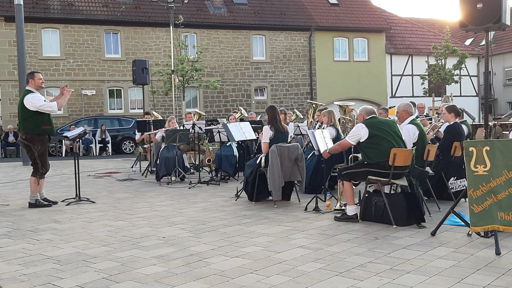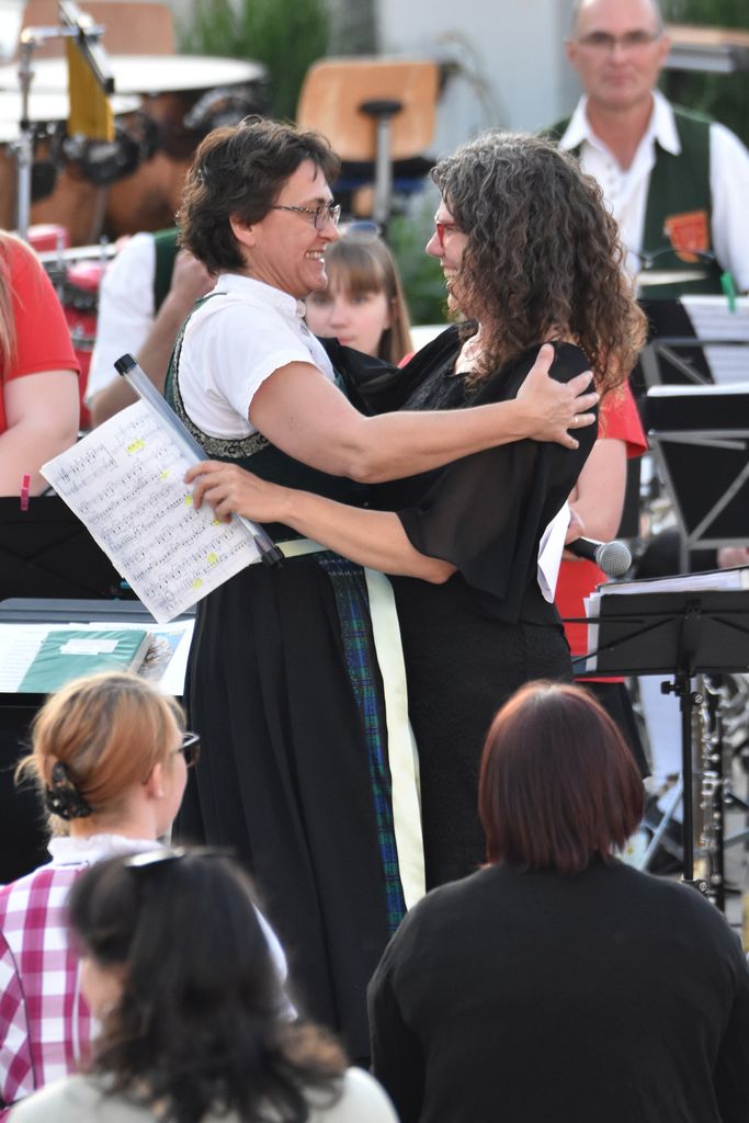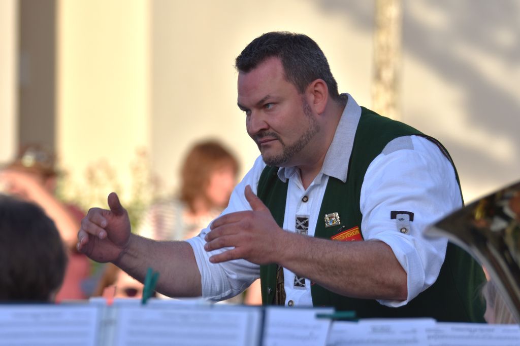 Nach der Pause betraten die Musikerinnen und Musiker der Trachtenkapelle Waigolshausen die Bühne. Ihr Auftritt hing bis vor kurzem in der Luft, da der Dirigent Daniel Frankenberger krankheitsbedingt kurzfristig ausgefallen war. Spontan erklärte sich jedoch Bernhard Müßig bereit einzuspringen und schaffte es, nahtlos an die Probenarbeit von Frankenberger anzuknüpfen. So schlugen die Herzen von Fans böhmischer Blasmusik bei den „Böhmischen Perlen“ oder den „Träumereien im Egerland“ im Takt mit der Musik. Ihre musikalische Qualität stellten Thomas Steinlein und Manuel Schraut (beide Trompete) bei „Herzfeuer“ unter Beweis und wurden mit lang anhaltendem Applaus belohnt. Kräftig mitgeklatscht wurde auch bei der Bodensee- oder der Weinkeller-Polka. Ein weiterer Höhepunkt des Abends war das gemeinsame Musizieren des Jugendblasorchesters mit der Trachtenkapelle bei „Wir Musikanten“.