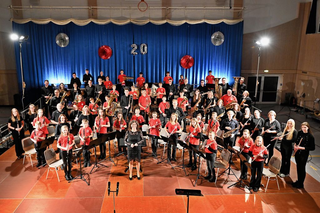 Tanja Mauder (MV Waigolshausen) und Tobias Chalupka (MV Theilheim) gaben im Anschluss einen kurzen Rückblick auf die Entstehung der ff-Kids und machten deutlich: Was als Vision begann, ist 20 Jahre später eine starke – nicht nur - musikalische Gemeinschaft. Wie sehr sie für die Musik brennen, bewiesen im Anschluss Philipp Sauer, Fabio Korn, Lorenz Grob und Jakob und Paul Weißenberger mit dem Schlagzeugstück „Fire“, das sie mit äußerster Präzision spielten. Zeit zum Durchatmen blieb dem Publikum nach dieser „heißen“ Performance nicht, denn sogleich verwandelte sich die Bühne für das Medley aus den bekanntesten Liedern des Musicals „Tarzan“ in einen Dschungel. Immer wieder unglaublich ist, welche Spielfreude, Kraft und Professionalität die Kinder und Jugendlichen, die nach Alter und Musikerfahrung in „Smarties“ und „Teenies“ aufgeteilt sind, an den Tag legen und ihr Publikum mitreißen. So war es bei den Stücken „The Wellerman“ und „Despacito“ praktisch unmöglich, nicht mitzuwippen oder mitzuklatschen. Zu verdanken ist dies vor allem der Dirigentin Michaela Weißenberger, die mit unerschöpflichem Elan und Enthusiasmus „ihre“ ff-Kids motiviert und begeistert. Sie wurde an diesem Abend mit vielen Beinamen versehen: „schönste Stimmgabel Frankens“, „Motor“, „Herzstück“ und „Seele“ sind nur einige. Dass die ff-Kids auch leise können, zeigten sie bei „River flows in you“. Eingeleitet durch ein gefühlvolles Solo am Klavier von Fabio Korn, das die Zuhörer wie eine warme Umarmung umfing, stimmte das Orchester sodann sanft mit ein und machte das Stück so zu einem bewegenden Erlebnis. Nach einem Medley der größten ABBA-Hits, kam Bewegung auf die Bühne: Die ff-Kids gingen ab und machten Platz für ihre Vorgänger, die ehemaligen ff-Kids, darunter sogar ein Gründungsmitglied! Sie spielten rockige Medleys von Bon Jovi und Brian Adams und bewiesen, dass sie nichts von ihrer Spielfreude verloren hatten. Nun wechselte noch einmal die Besetzung und das Familienorchester nahm Platz auf der Bühne. Mit „Böhmischer Traum“ und „Hooked on a feeling“ machten sie das Konzert zum Familienfest. Höhepunkt war das Medley aus Liedern des Disney-Films „Encanto“, zauberhaft anmoderiert von Amelie Büttner und märchenhaft gespielt vom Orchester. Zum großen Finale kamen schließlich alle Beteiligten auf die Bühne und ließen – wunderschön herzerwärmend - „Only time“ erklingen. Hier wartete man förmlich darauf, dass es goldene Konfetti von oben regnete. Zum Abschluss bedankte sich Thomas Steinlein, Vorstand des Musikvereins Waigolshausen noch einmal bei Michaela Weißenberger und Tanja Mauder, ohne die ein solches Konzert nicht möglich gewesen wäre. Auch die ff-Kids selbst bedankten sich mit einem Gedicht bei dem musikalischen „Super-Team“ und überreichten Geschenke.