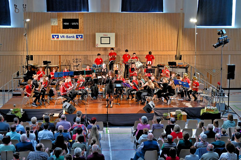 Voller Temperament und Lebensfreude eröffneten die Nachwuchsmusiker der ff-Kids unter der Leitung von Michaela Weißenberger das Konzert mit Musik aus dem Film „Encanto“. Bei „Shackelford banks“ ließen die jungen Musiker mit imposanter Klangkraft vor dem geistigen Auge wilde Pferde galoppieren. Mit leisen Tönen begannen die „Leuchtfeuer“. Hier verstanden es die Jungmusiker, im feinen Zusammenspiel die Stimmung des Stücks einzufangen. Bei „SlideShow“ schlug die Stunde der Blechbläser: Noah Distler, Jakob Weißenberger, Ferdinand und Emil Schuler präsentierten das Posaunenstück souverän und mit viel Spielfreude. Mit einem sanften „Only time“ (Enya) und einem umso kraftvolleren „Viva la vida“ (Coldplay) verabschiedeten sie die ff-Kids und machten Platz für den Musikverein Waigolshausen unter Leitung von Bernhard Müßig.