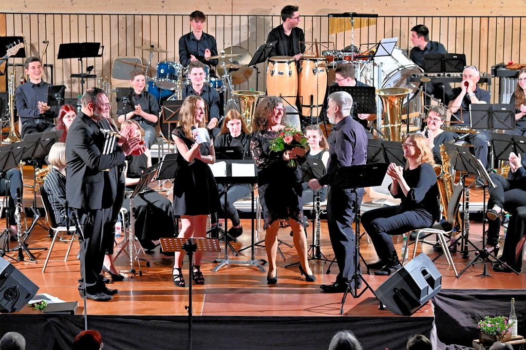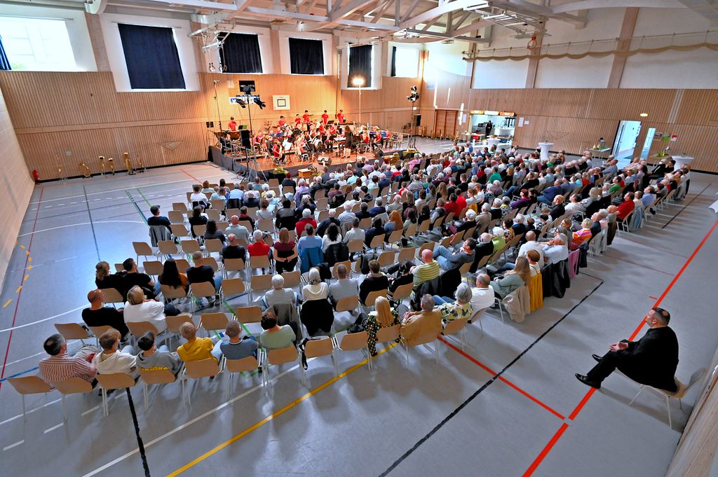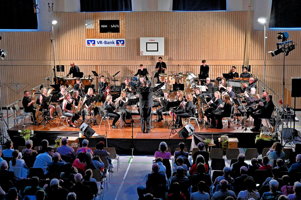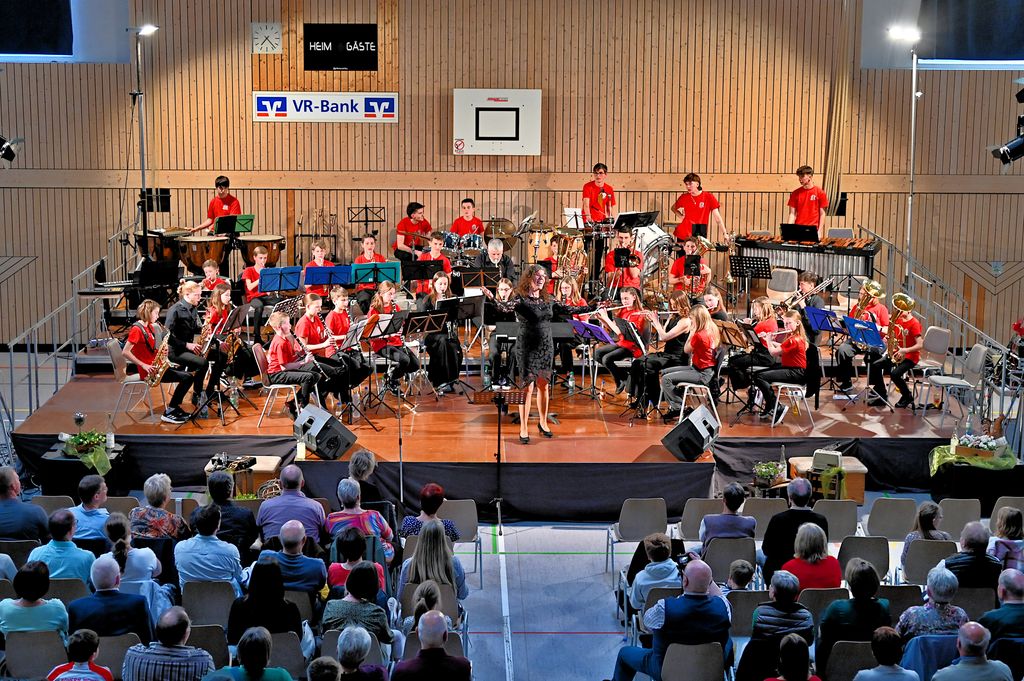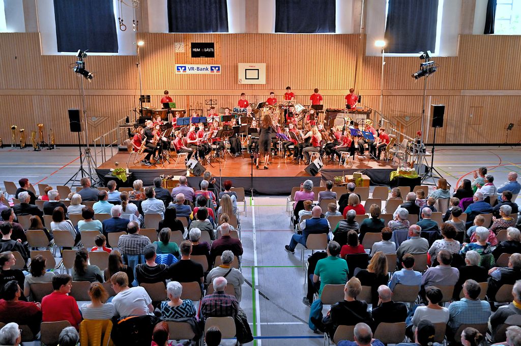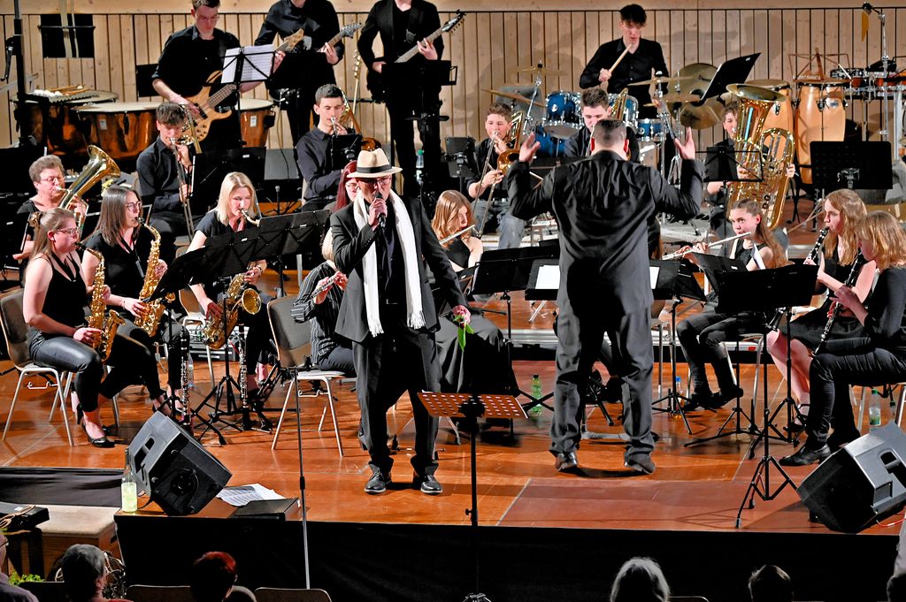 Dieser startete mit dem Konzertmarsch „Mit Freude und Schwung“ (S. Schlotter), gefolgt von der Polka „Pura Vida“ (L. Bruckmeyer). Dem klassischen Einstieg folgte ein wahres Fest an Klängen und Tönen. So sah man sich bei der „kleinen ungarischen Rhapsodie“ in die Puszta versetzt, um kurz darauf bei den „British Classics“ musikalisch im Vereinigten Königreich zu landen. Ein absolutes musikalisches Brett war „Innuendo“. Der „Queen“-Klassiker forderte die Musikerinnen und Musiker, aber auch die Sänger, Sebastian Reichert und Werner Mauder, durch seinen Mix an Stilen und unregelmäßiger Taktarten. Alle aber meisterten diese Herausforderung herausragend. „La dolce vita“ flutete bei „Just a gigolo“ die Bühne, auf der Werner Mauder gekonnt den Casanova gab. Zum Abschluss gab Amelie Büttner mit dem gefühlvollen „Lenas Song“ aus dem Film „Wie im Himmel“ ihr Gesangsdebüt. Natürlich entließ das Publikum das Orchester nach diesem atemberaubenden Konzert nicht ohne Zugaben. Und so erklangen „Imagine“ und – mit Unterstützung der ff-Kids - „Nessaja“.